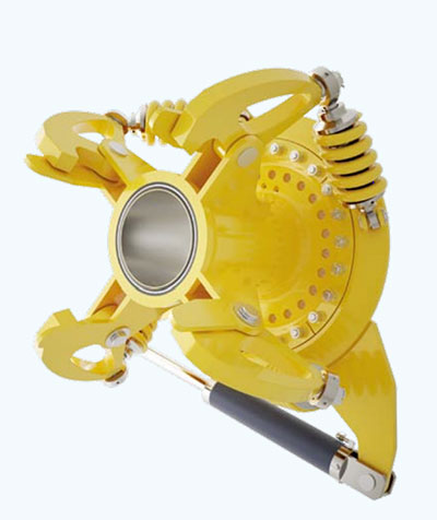 The collar is rotated by means of a single hydraulic cylinder on a bronze bearing.