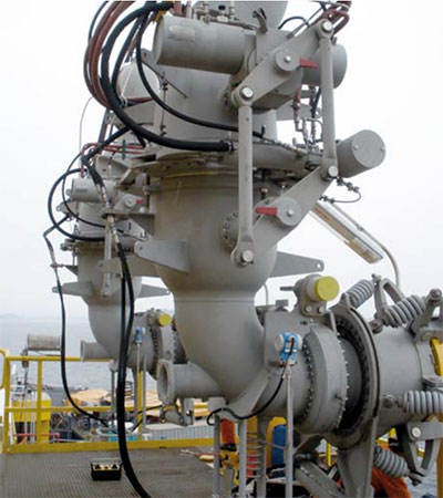 Equally suited to rigid marine arms or flexible hoses, the system is hydraulically activated and includes specially developed interlocking system. Already installed in hundreds of terminals world wide.