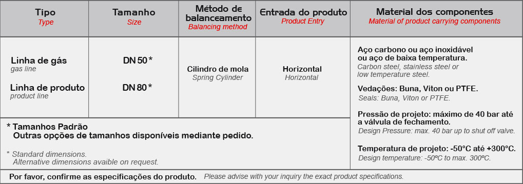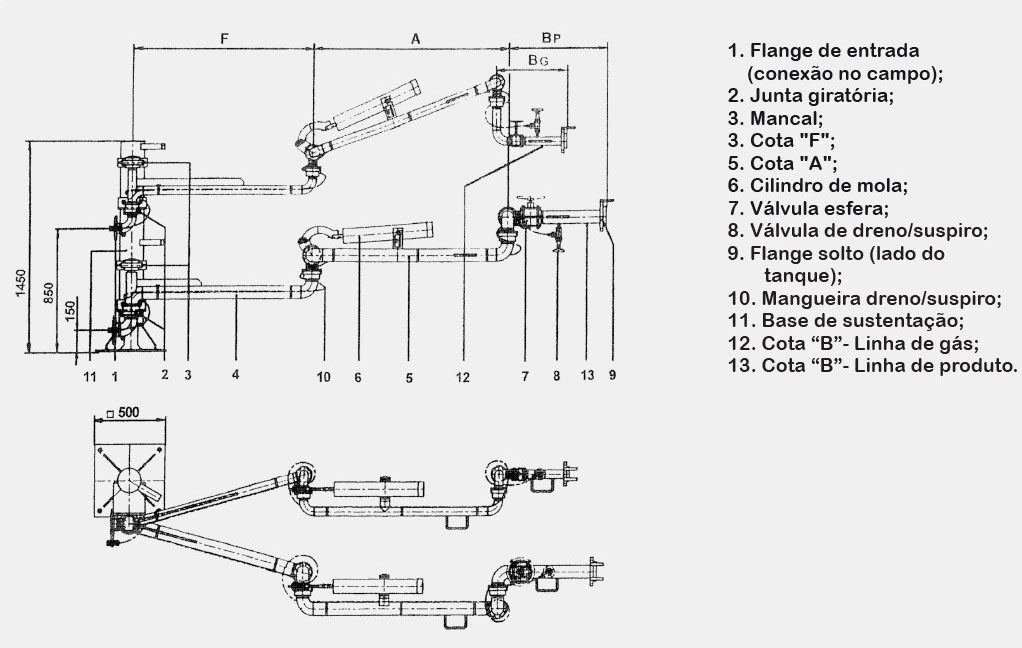 Este tipo de braço de carregamento é especialmente projetado para carregamento de produtos onde existe a necessidade de retorno de vapor. O mesmo é adequado para carregamento/descarregamento de fundo de caminhões ou vagões tanques com conexões ou acoplamentos flangeados.