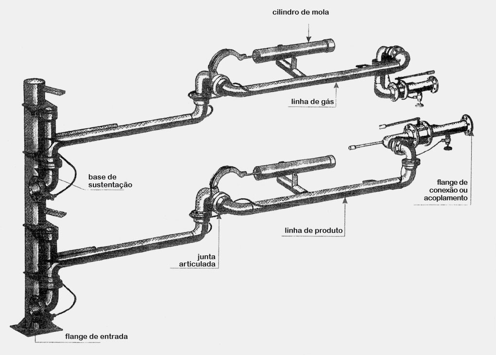 O braço de carregamento é adequado para aplicações onde não é possível o posicionamento preciso dos flanges de conexão dos tanques.