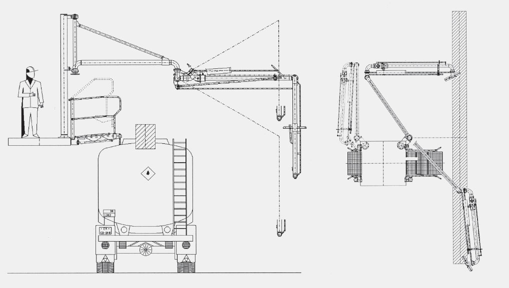 Ele é adequado para carregamento superior de caminhões tanque rodoviários ou ferroviários usando a boca de visita. Braço de carregamento tem longo alcance e é adequado para aplicações em que a boca de visita não pode ser precisamente posicionada.