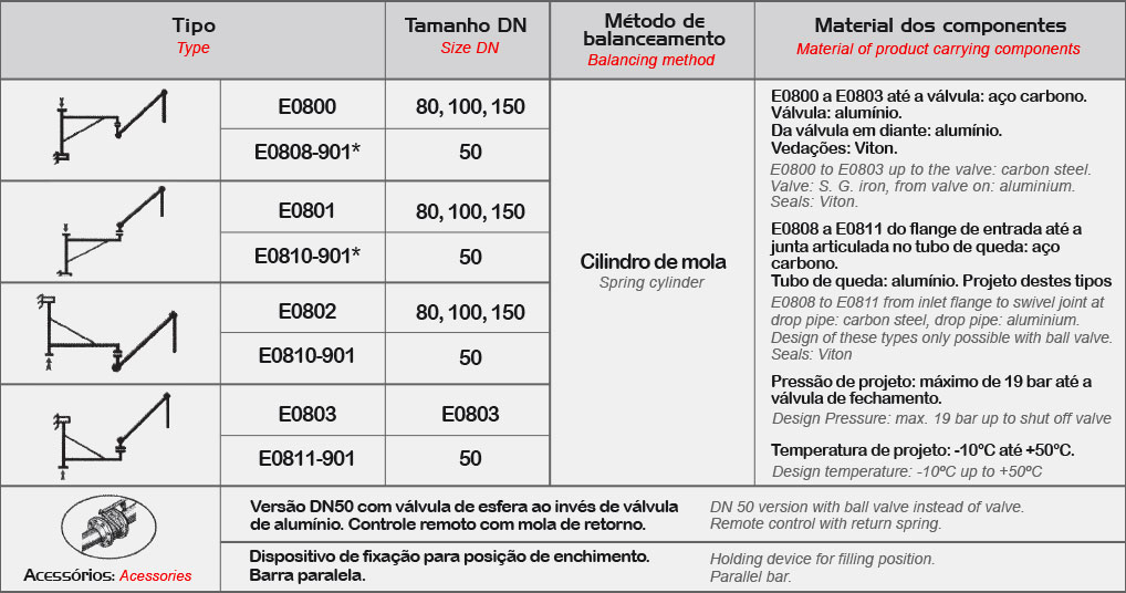 Este tipo de braço de carregamento é especialmente projetado para carregar produtos de petróleo.