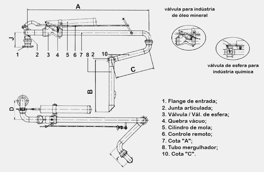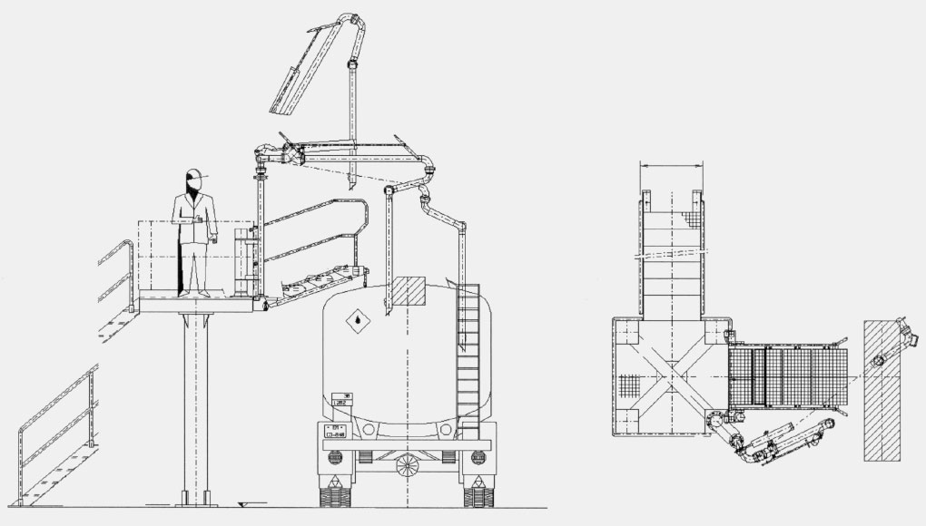 Este tipo de braço de carregamento é especialmente projetado para carregamento pelo topo de caminhões tanque rodoviários ou ferroviários usando a boca de visita. Braço de carregamento tem um alcance variável